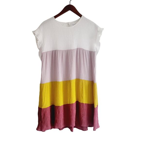 Tiered roomy color block size small dress Excellent used condition. Lined. Polyester crinkle material. Great summer dress.