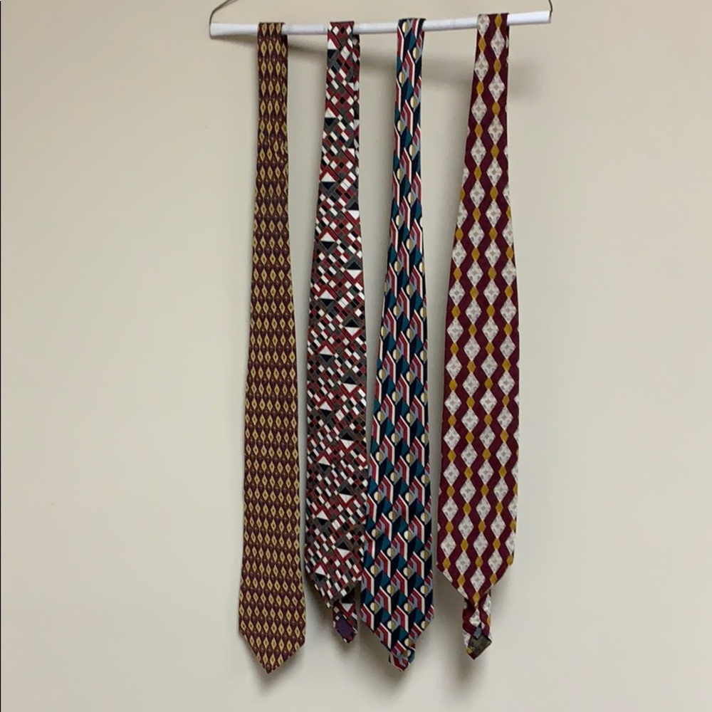 4 different brands of ties; hunting horn, cape cod, signature collection, and Kenneth jay lane