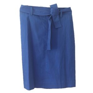That classic look that J. Crew does so well in a linen pencil skirt that has a slight bit of an a-line shape. The color is so uniquely vibrant and the matching tie-belt is makes it flattering for so many body types.