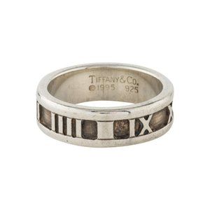 Amazing, Tiffany & Co., Atlas collection, sterling silver, band style, size 4.5, ring with an intricate, engraved, Roman numeral design! This is a unique piece from Tiffany & Co. that would make a perfect signature ring! This piece is perfect for a lover Tiffany & Co. jewelry! It is from the 'Atlas' Collection and dated as being from 1995. The ring is substantial and solid with a intricately engraved sterling silver band. All measurements are approximate. N0815
