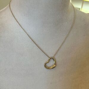 Tiffany And Co Elsa Peretti Open Heart 27mm Pendant Necklace 925 Silver 16”