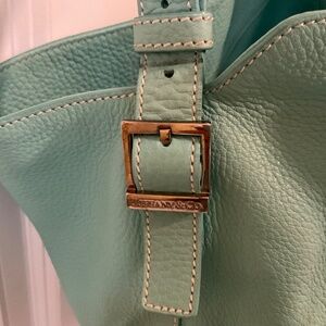 This Hobo is made of natural grain Italian leather with palladium-plated solid brass hardware. Tiffany Blue® leather lining with three small interior pockets, a zipper compartment and a key ring. Magnetic closure. Single adjustable shoulder strap.
