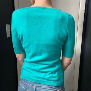 This cardigan sweater has subtle ruching on the sides to enhance your hourglass shape. It is comfy and in great condition. Comes from a smoke free home!