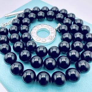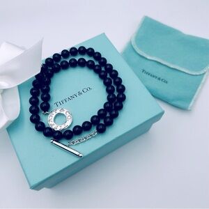 Tiffany & Co. 18” Black Onyx Toggle Necklace in Silver with Packaging