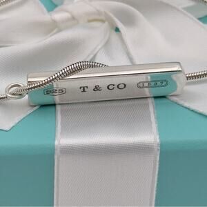 Tiffany & Co 1837 Bar Pendant Necklace 17" Sterling Silver 925 W/ Gift Pouch & Box 🎁