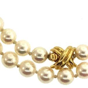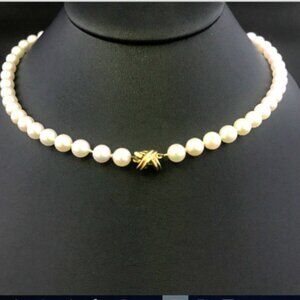 Tiffany & Co 18K Gold Akoya Pearl Signature X 18" Strand Necklace w/ Suede Case