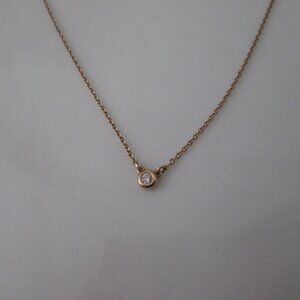 Tiffany & Co 18K Rose Gold .03ct Elsa Peretti Diamond by the Yard Necklace. A bezel-set round brilliant diamond. 16 inches long. Spring clasp closure. Excellent condition.