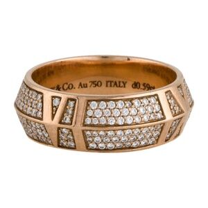 Tiffany & Co 18K Rose Gold Atlas Pave Diamond X Closed Wide Band Ring 18k rose gold with pave diamond Pave diamonds 0.55ctw Band wide 7.5mm Ring is size 7