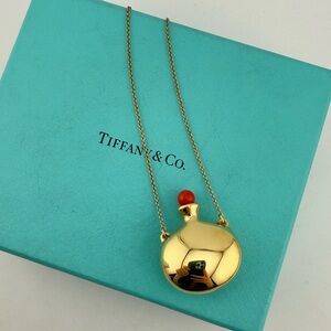 Tiffany & Co. 18k Coral Elsa Peretti Bottle Round Bottle Pendant Necklace 13g