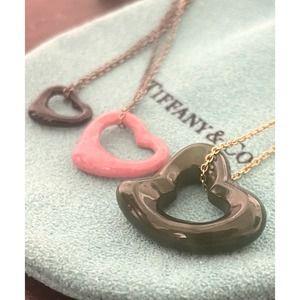 Tiffany & Co. 18k Gold Large Elsa Peretti Green Jade Open Heart Pendant Necklace - *a rare piece, not many large jade hearts were made.