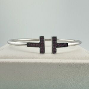 Tiffany & Co. 18k Ruby Tiffany T Square Bracelet Bangle in White Gold
