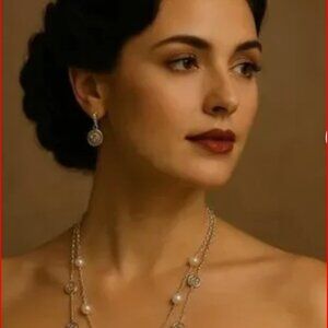 Tiffany & Co 34" Pearl Necklace Nature Rose Sterling Silver with Case Rare