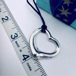 Tiffany & Co. 36 mm LARGE Open Heart Silk Cord Necklace with PACKAGING