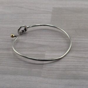 This exquisite bracelet from Tiffany & Co. showcases a harmonious blend of silver and gold, symbolizing timeless elegance. The intricate infinity design adds a touch of sophistication, making it a perfect accessory for any occasion. Crafted with precision, this bracelet is a testament to Tiffany & Co.'s commitment to quality and style.