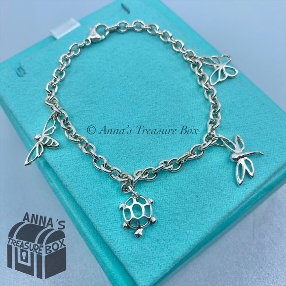 Tiffany & Co. 925 Silver Dragonfly Butterfly Turtle Firefly 7.25" Bracelet (pch)