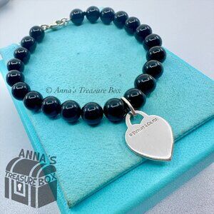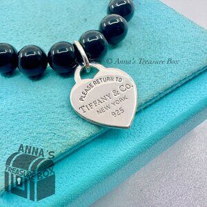 Tiffany & Co. 925 Silver RTT Heart Tag 8mm Black Onyx 7.75" Bracelet (pouch)