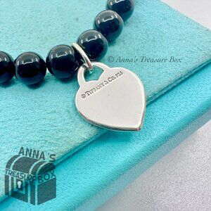 This is an authentic Tiffany & Co. 925 silver 8mm black onyx RTT heart tag bracelet.