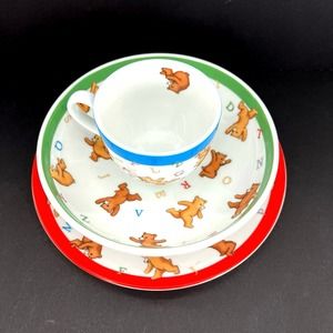 Tiffany Co Alphabet Bears Dish Set Childs Plate Mug Cup Ceramic ABC’s 2006 Japan