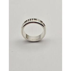 Authentic Tiffany & Co. Atlas pierced band ring in solid sterling silver (925). Classic Roman numeral cutout design, comfortable everyday wear.