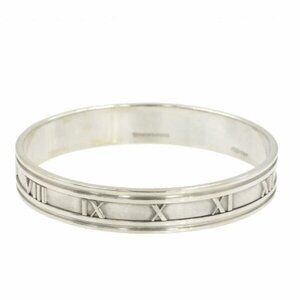 Tiffany & Co. Atlas Wide Bangle Bracelet 7.8" Silver 925 Auth #06593