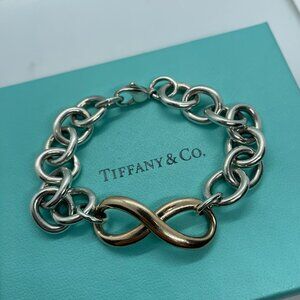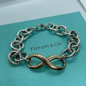 Tiffany & Co. Authentic Chunky Large Link Infinity Bracelet in Sterling Silver with Rubedo Link