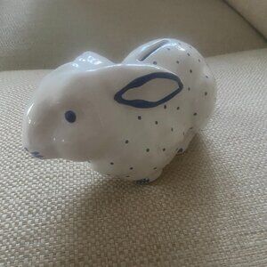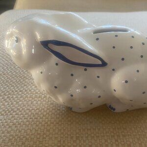 Tiffany & Co BLUE Polka Dat Ceramic Rabbit Bunny Bank AUSTRIA. Very Good condition. Used briefly and then put away