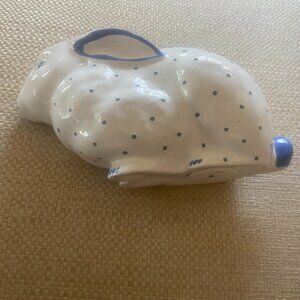 Tiffany & Co BLUE Polka Dat Ceramic Rabbit Bunny Bank AUSTRIA