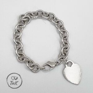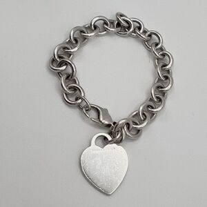 Tiffany & Co. Blank Heart Tag Charm Bracelet 8" Sterling Silver Round Link