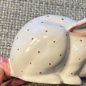 Adorable ceramic rabbit with pink dot accents. Ideal for playful decor.
