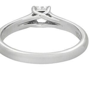 This stunning engagement ring from Tiffany & Co features a .30ct Lucida square cut diamond set in platinum. The ring is hallmarked, pat. pending, and has a registration number. It boasts a solitaire setting with a single, clear white diamond that is not enhanced and has a flawless clarity grade of E-VS2. The ring is size 4.75 and is easily resizable. The band is 2.0-2.5mm wide and the main stone is 4.04mm in diameter with a square shape and a depth of 2.6mm. The ring is part of the Tiffany Lucida Collection and has a total carat weight of .30ct. It is a beautiful and elegant piece that would make a perfectly gorgeous engagement ring.