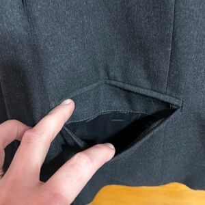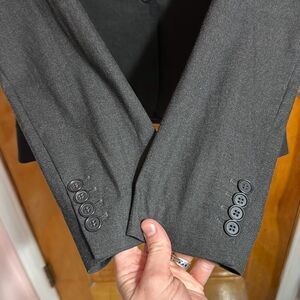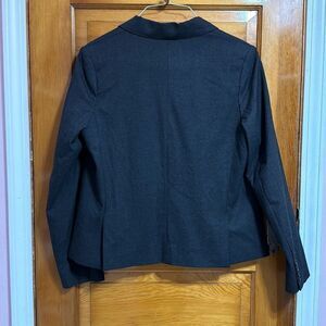 Great condition polyester/viscose/elastane blend charcoal grey colored one button blazer. 4th photo is most true to color. Women’s size US 10 but measurements taken flat are approximately: