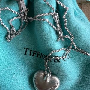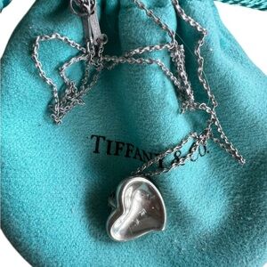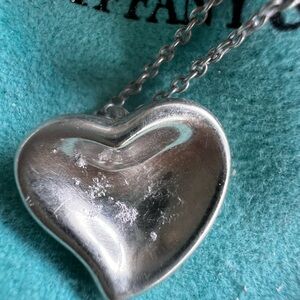 Freshly polished and shiny Tiffany full heart necklace. Necklace is in excellent condition and comes with its Tiffany pouch.