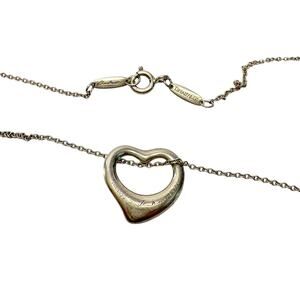 Tiffany and Company Elsa Peretti small open heart necklace. Sterling Silver. Imprinted with Elsa Peretti signature. Small size - Approx 5/8 " wide (0.63").