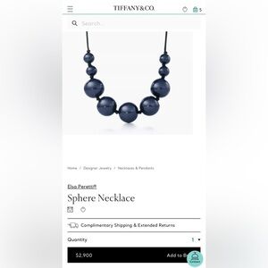 Tiffany & Co. Elsa Peretti Sphere Necklace Blue Lacquered Japanese Hardwood