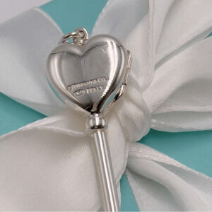 Tiffany & Co. Large Heart Key Double Sided Picture Locket Sterling Silver 925 T&Co. Pouch, Box, Ribbon & Bag 🎁🎁