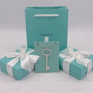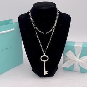 Tiffany & Co. Extra Large Key Pendant Necklace Sterling Silver W/ Pouch, Ribbon, Box & Bag 🎁