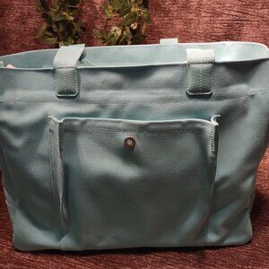 Look at this beauty! This gorgeous bag is in new condition. It may have never been used. I see no marks, stains, rubs or even fading like these bags tend do do over time from use. NO FADING! Woohoo! This is the extra large seasider by Tiffany & Co. It has leather handles and a leather bottom. This bag would be great as an every day bag, travel bag, overnighter, or even a work/business bag. Imagine the looks walking in with this beauty on your arm! Arm candy at its best! The bag measures 17" wide x 13" high x 8 1/2" deep. Handles have a 8" drop. Dont miss the chance to own this awesome piece of elegance! 1000% Authentic!