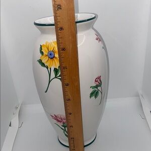 This exquisite Tiffany & Co vase showcases delicate blue and yellow floral accents, adding a touch of elegance to any space. The hand-painted designs are beautifully crafted, highlighting the brand's commitment to quality and style. Perfect for enhancing your home decor with a splash of color and sophistication. Dirt in the bottom of vase. Used condition.