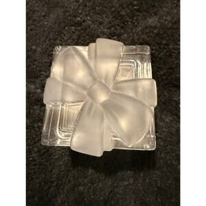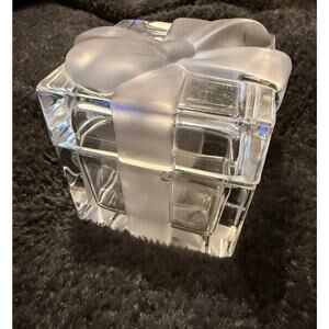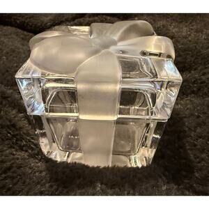 Gorgeous Crystal gift box with frosted bow, marked "Tiffany & Co" to the underside. 3.5" H x 3" W x 3". One tiny chip on inside rim- not visible unless lid is off and even then it’s hard to see.