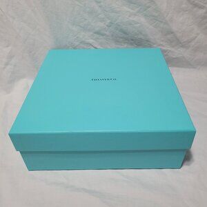 The Tiffany & Co Gift Box is a large, square decorative storage container made of paper/cardboard or cardboard. The blue color and solid pattern make it suitable for all occasions and can be a great gift box for adults. With its luxurious brand name and dimensions of 9.5x9.5x3.5, this multipurpose gift box is perfect for organizing and storing small items in style.