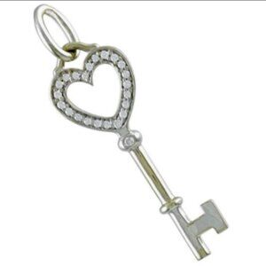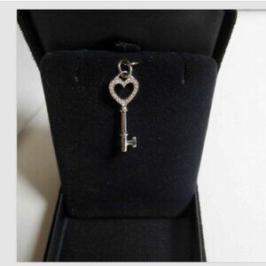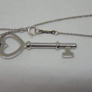 Tiffany & Co Gold Open Heart Key Pendant Diamond 18K, 4 Necklace, Boxed