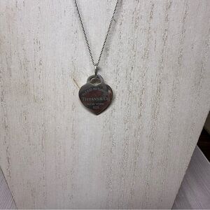 This exquisite Tiffany & Co necklace features a delicate silver chain adorned with a charming green heart-shaped pendant. Its minimalist design ensures it complements any ensemble, making it a versatile addition to your jewelry collection.