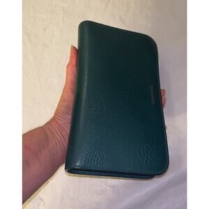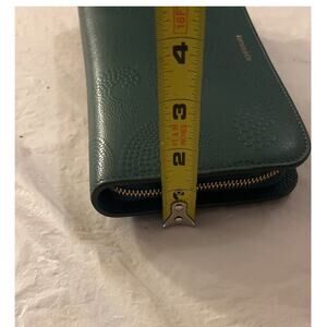 Tiffany & Co. Green Wave Embossed Continental Leather Zip Wallet Clutch Wallet