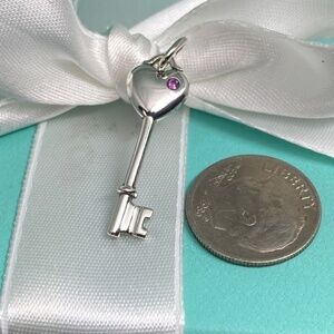 Tiffany & Co Heart Key pink sapphire charm 925 silver w/box