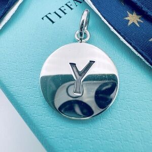 Tiffany & Co. Letter Y Round Tag Initial Charm in Sterling Silver with Pouch