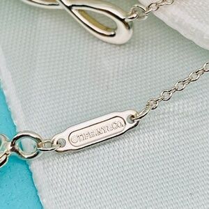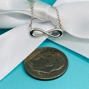 Tiffany and Company infinity necklace. This delicate sterling 925 necklace is adjustable 16-18” long. This has been cleaned and is new condition ready for gift giving. The necklace will come in a Tiffany box and pouch