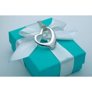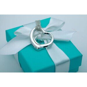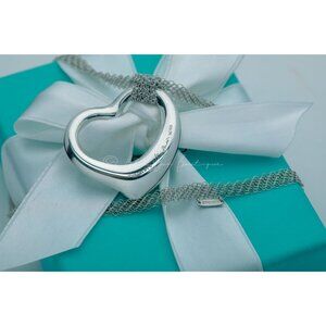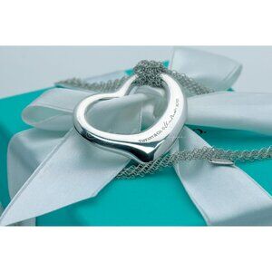 100% Authentic Tiffany & Co. Necklace Large Open Heart Mesh Pendant 36mm in Silver. Chain measures 30" in Length In excellent condition. Professionally cleaned and polished to shine like new. Absolutely beautiful in person Includes original Tiffany pouch and box, perfect for a gift or safe keeping What makes this piece special: Embodying the essence of love and timeless elegance, the Tiffany & Co. Vintage Elsa Peretti Open Heart Pendant is a true masterpiece. Crafted in high-quality sterling silver, this iconic piece from Elsa Peretti’s celebrated collection features a beautifully simple yet striking open heart design. The gentle curves of the heart are elegantly balanced, creating a piece that is both modern and classic. Known for her ability to blend minimalism with deep emotional meaning, Elsa Peretti’s designs are timeless, and this pendant is no exception Whether you're treating yourself or searching for the perfect gift, this necklace offers the unmistakable brilliance and heritage of Tiffany & Co. A modern classic designed to shine for a lifetime. Restored to Tiffany standard: Every Tiffany & Co. piece from Blue Box Boutique undergoes a meticulous, multi-stage restoration to revive its brilliance while preserving its history. Professionally cleaned and polished, this bracelet has the bright, high-shine finish you expect from luxury jewelry. It’s ready to wear or gift immediately, with no dullness, tarnish, or imperfections holding it back. Fast Shipping!