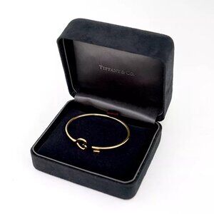 Tiffany & Co. Open Heart Key Bangle Bracelet 5.5" 18k Yellow Gold 750 Auth