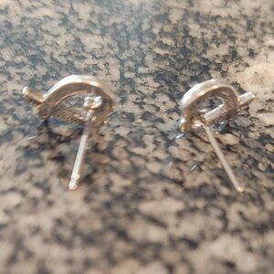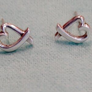 Loving Hearts Stud Earrings. Pre-owned, will show some signs of wear such as tarnish, small scratches, the posts may be slightly bent. The earrings come with pouch as pictured. No backs.
