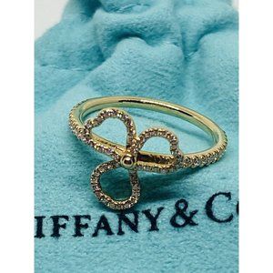 Tiffany & Co. "Paper Flowers" Open Clover 18K Rose Gold Size 5 .24CT Pouch Box.